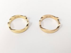 通常の指輪で見られるストレートなものではなく、