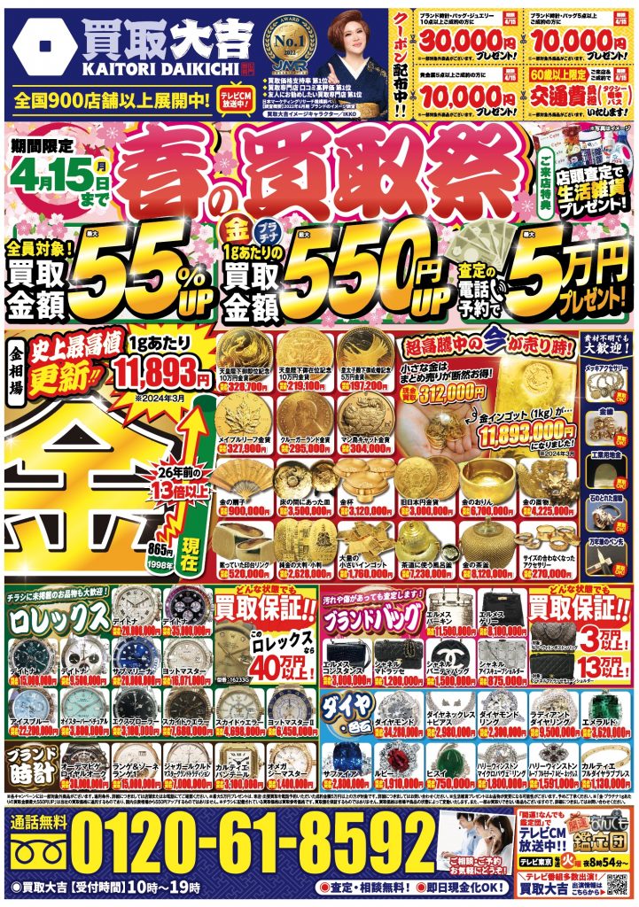買取大吉» 店舗紹介» グルメシティ芦屋浜店» グルメシティ芦屋浜店 店長ブログ» 【R6年4月チラシ 4/15(月)まで】