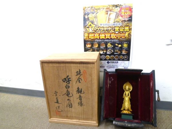 こんな立派な純金製の観音様はなかなかお目にかかれないと思いますが、