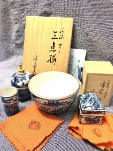 今回お買取りしたお品物は、三点揃に「祥瑞」、香合に「古染付」と箱書があります。