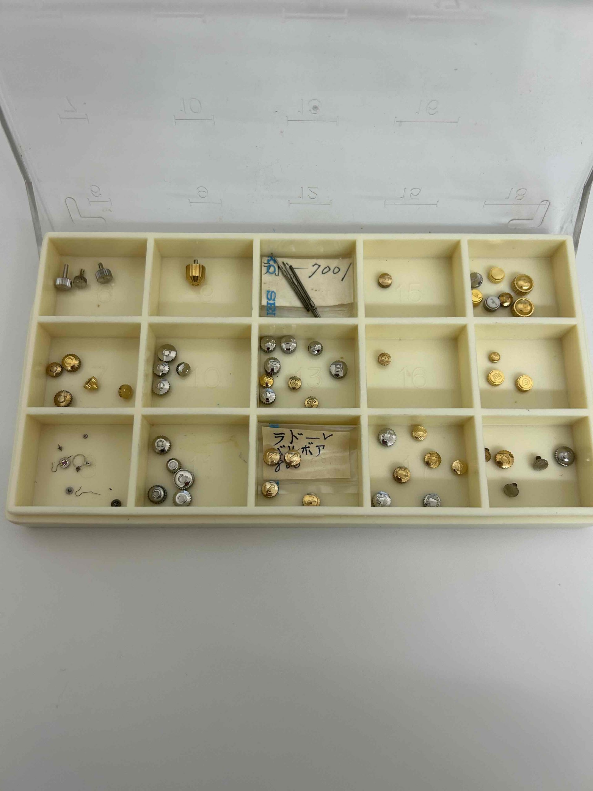 OMEGA、ロンジン、ラドーなど様々なリューズを買取させて頂きました。時計店を営んでいる方からのご売却です。写真店、時計店、歯科医院の方など事業されていた方がお店を閉じる際にもご利用されております。