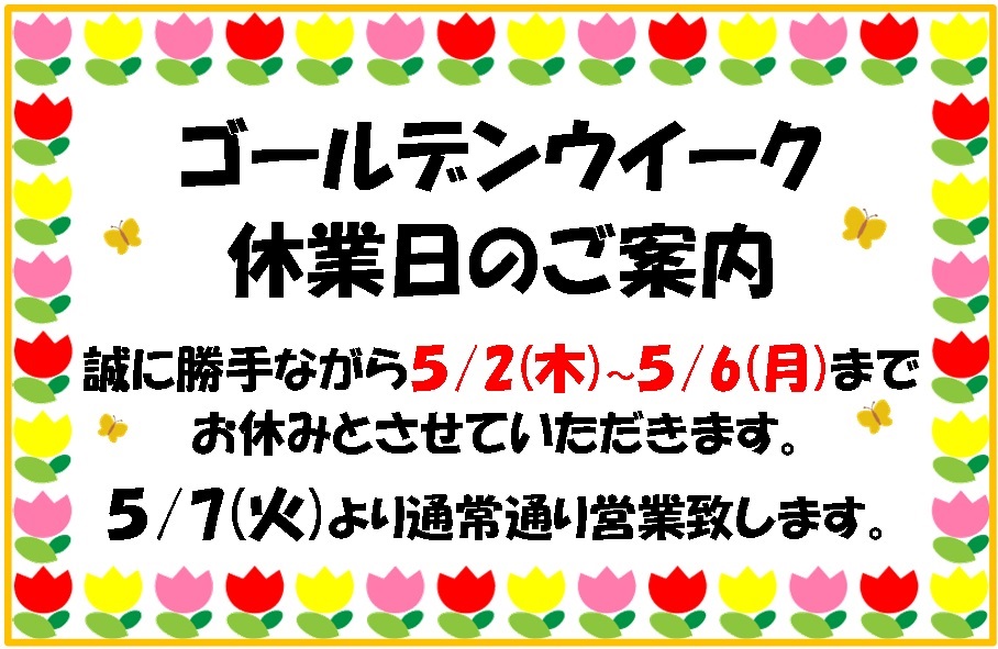 GW期間中の営業日のお知らせです😆