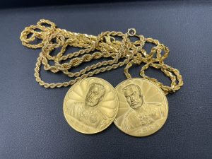 先日貝塚市の方からK18ネックレス、K22ネックレス、K24コインを高価買取させていただきました。