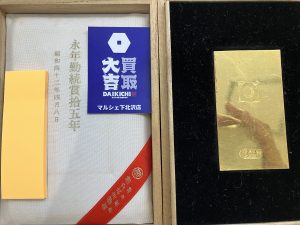 永年勤続15年として会社から授与されたモノです。