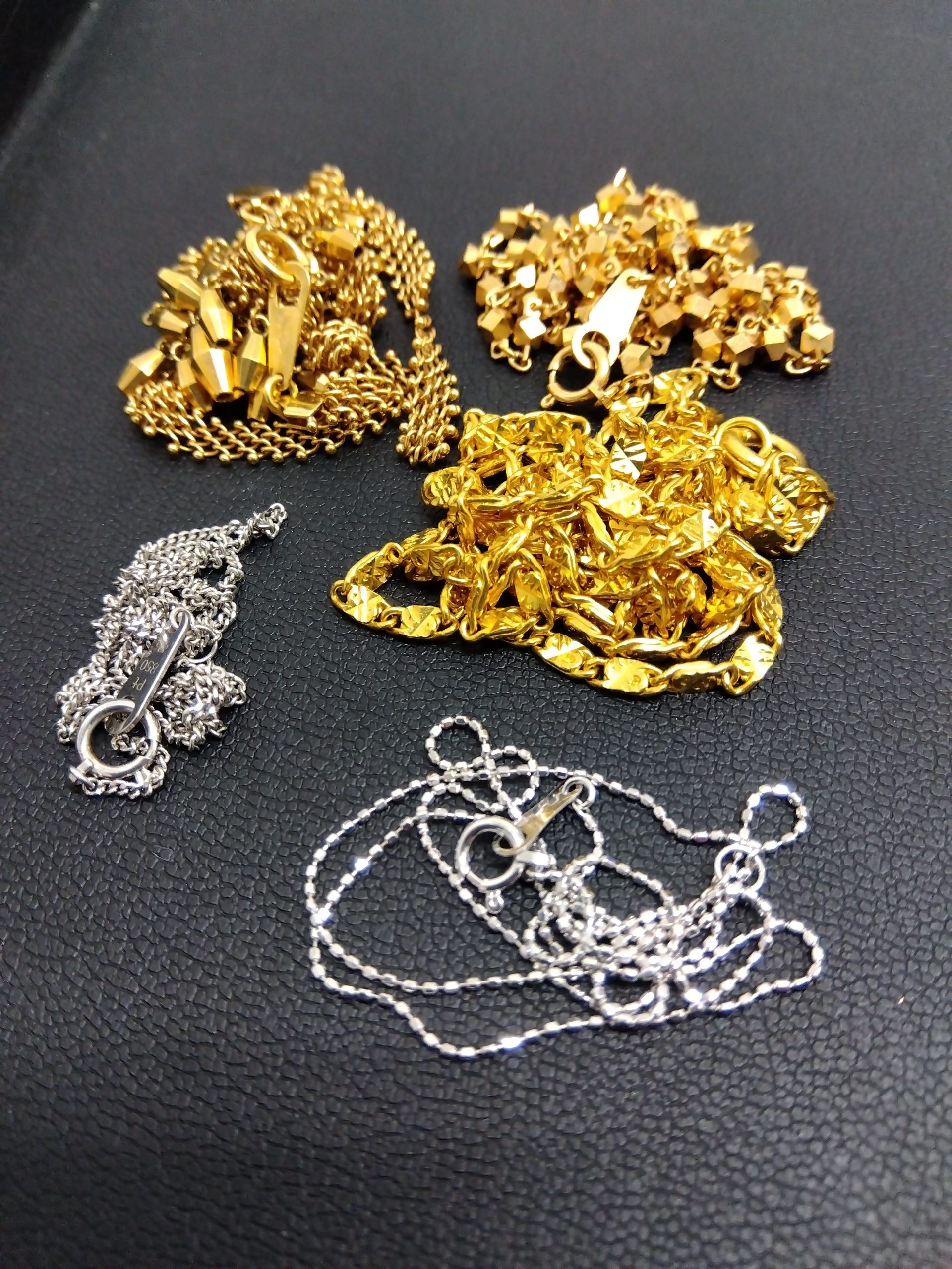 こちらk18ネックレスとpt850ネックレスでございます。
