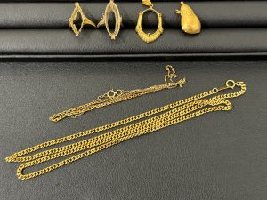 壊れた金のアクセサリー、金の欠片、大吉西広島駅前店にお持ち頂ければ、高価買取致します。