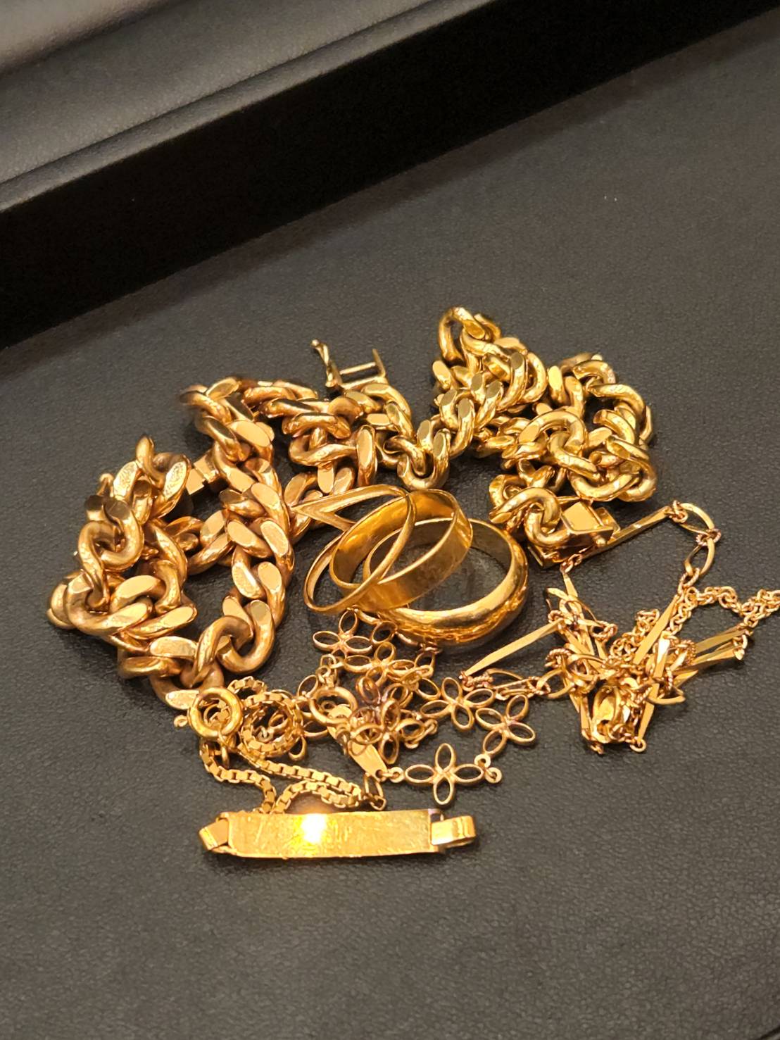 金の指輪、ネックレス、ブレスレットをおまとめ買取させていただきました。