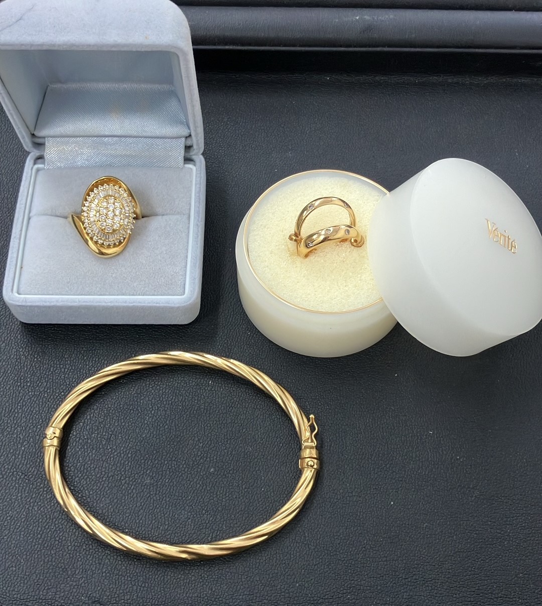 本日は18金ダイヤモンドリングと18金バングル、イヤリングのお買取りをさせて頂きました。