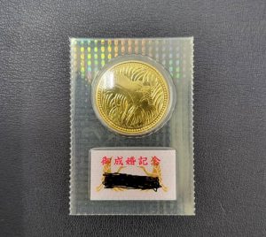 笠間市・石岡市・東茨城郡・水戸市・小美玉市・桜川市・茂木町周辺のお客様こんにちは。 買取り大吉トライアル笠間店です。 今回ご紹介のお品ものは 以前当店をご利用のお客様より御成婚金貨をお買い取りさせていただきました。数ある買取り店の中当店をご利用いただきありがとうございました。ご売却ありがとうございました。