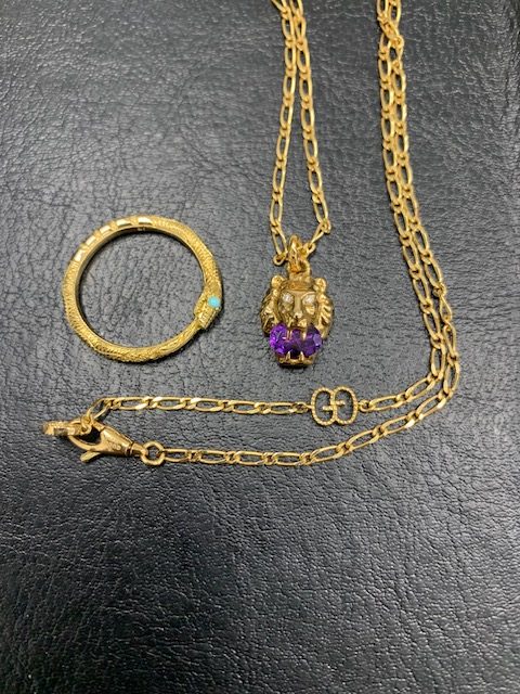 グッチスネークリングと、紫クリスタルストーン ライオンネックレスです。