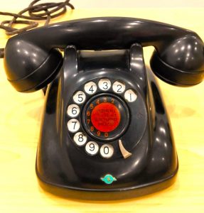 今ではめっきり見なくなった黒電話。