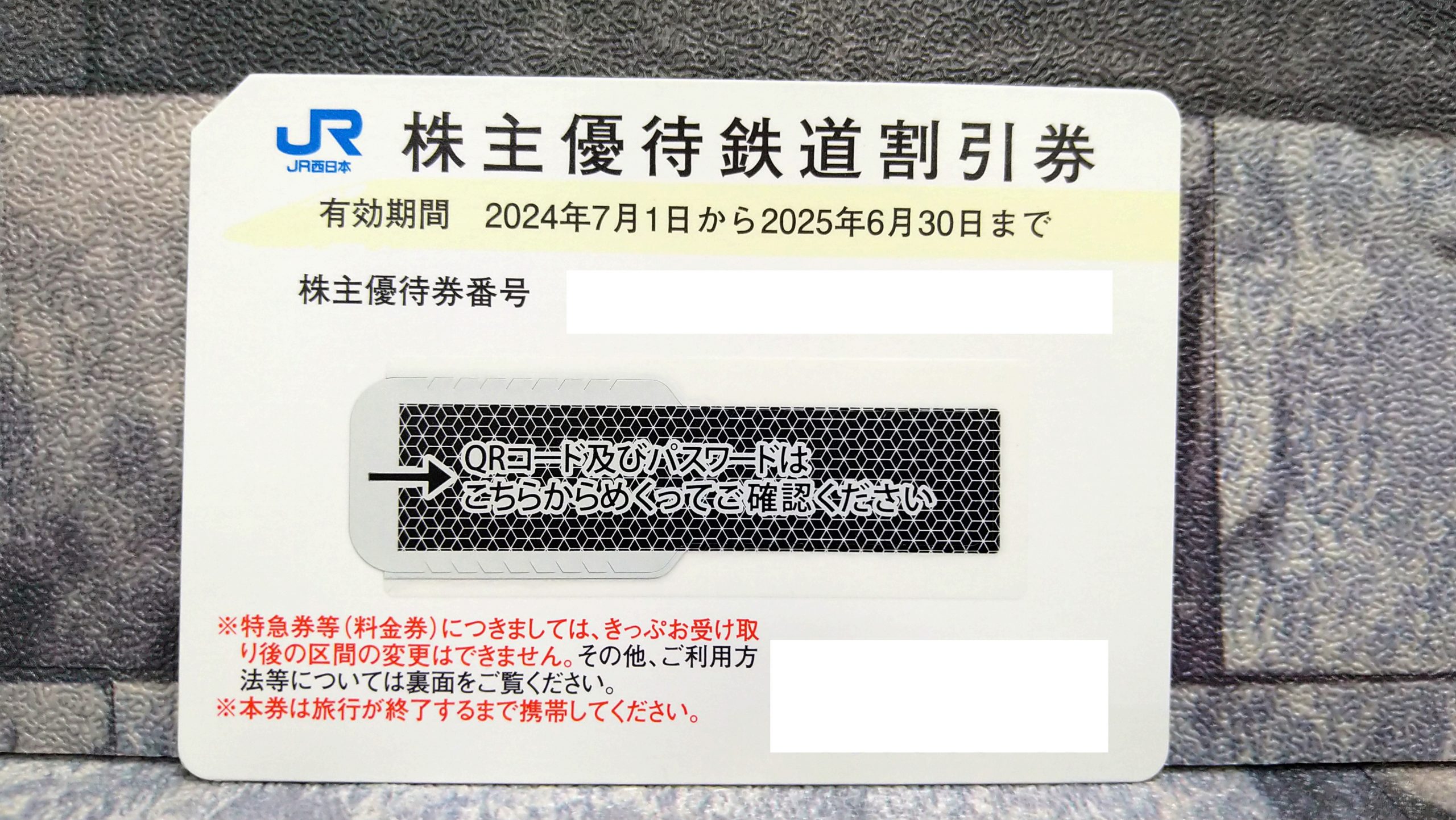 JR西日本の株主優待券をお持ちいただきました😊