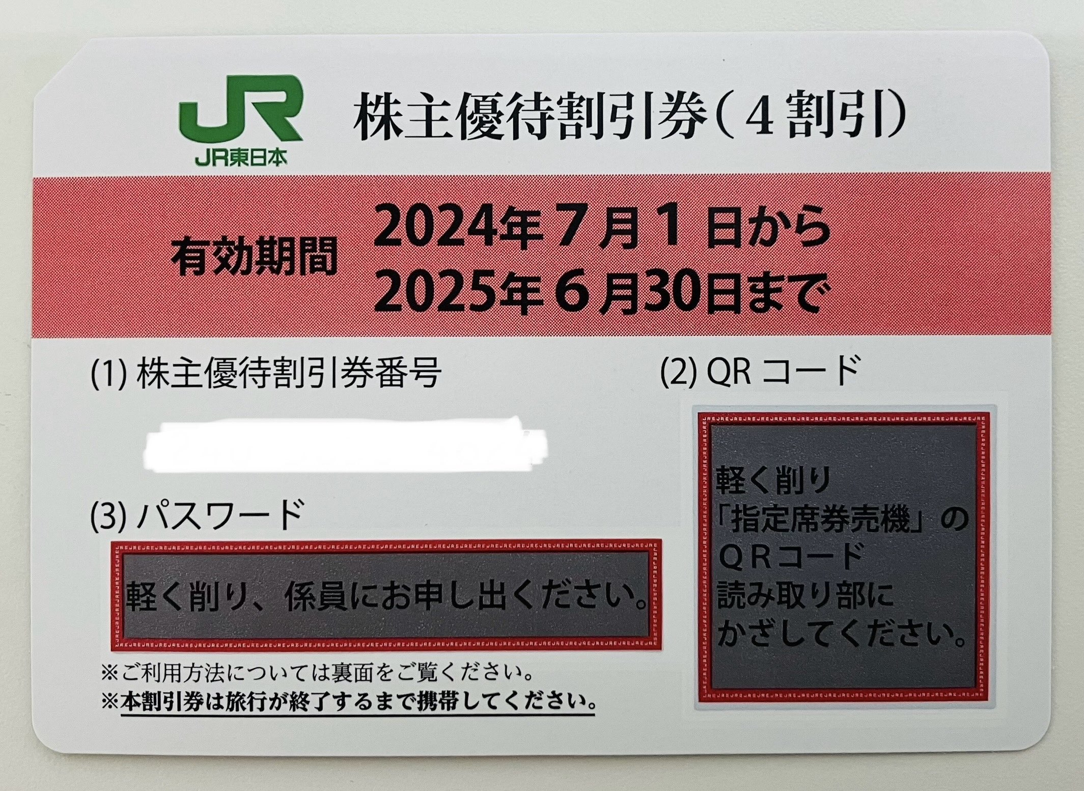 JR東日本株主優待割引券をお持ち込み頂きました。