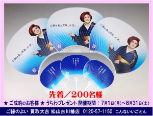 買取大吉プレミアム・イッコーさんうちわ ★ プレゼント! ご縁のよい買取大吉 松山古川椿店におまかせ下さい♪ | 松山古川椿店