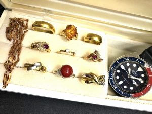 ネックレス1点、指輪9点と腕時計1点をまとめてお買取りいたしました!