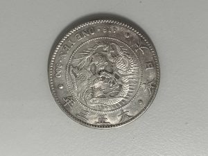 1871年(明治4年)に制定された新貨条例で「円(圓)」という新しい貨幣単位が導入されます。そのタイミングで発行されたのが一円銀貨です。一円銀貨は日本の貨幣ですが対外貿易用の銀貨として機能し、主に中国や台湾などのアジア諸国で使われていたそうです。