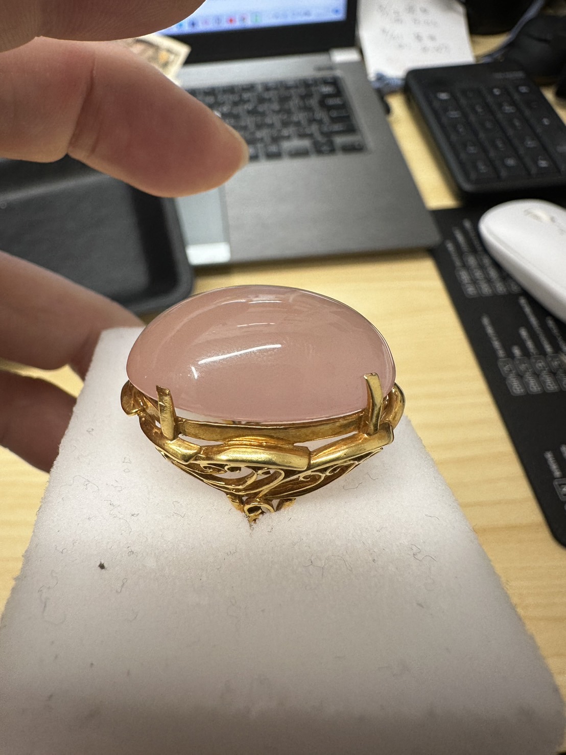 ローズクオーツ12CT k18 リング のお持ち込みとなります。近隣他店舗の金額を確認された後、当店ブログを確認されて、他店圧倒の金額だったようで、そのままお持ち込み頂きました。やはり少しでも良い査定額でのご売却がよろしいと思います。このお品物もお客様ご満足の高額査定にて、高価買取させて頂きました。ぜひご自宅で保管されている色石・貴金属類は、当店にお持ち込み頂いて、その価値をご確認の上、ご売却のご検討をお願い申し上げます。