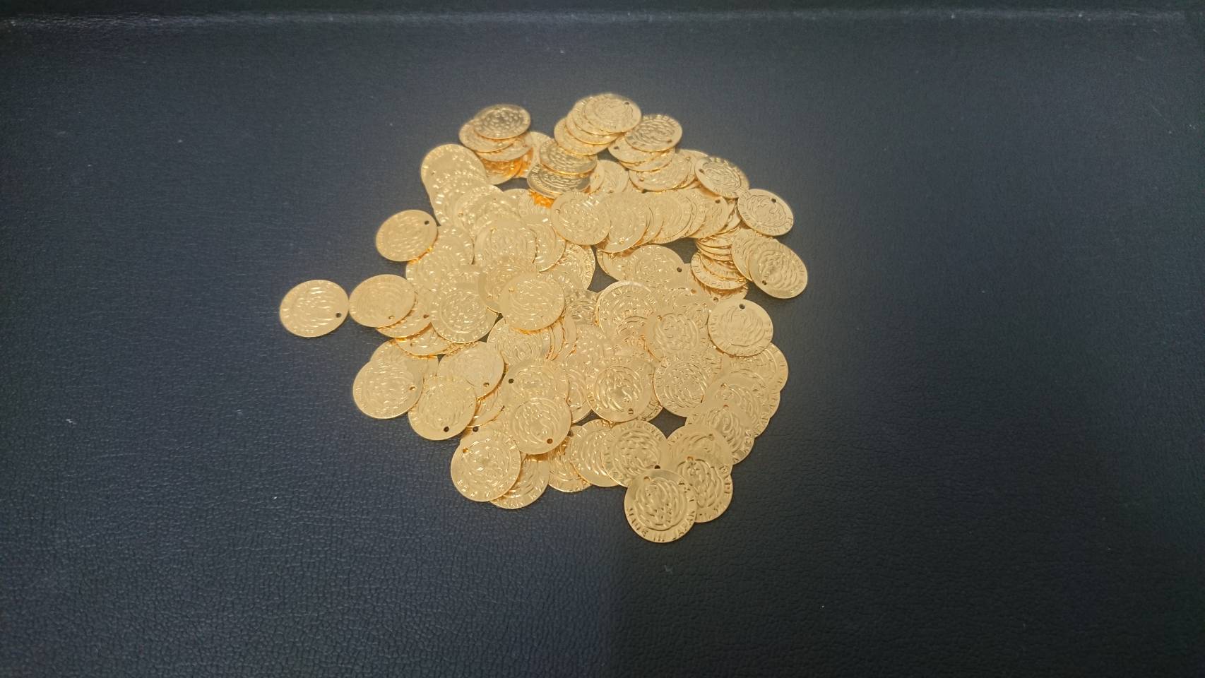 「Made in Japan」と「K24」の刻印がございます。薄く丸い形状で紐を通すような穴が開いており、おそらく何かしらのアクセサリーのパーツだと思われます。お持ちになったお客様も、貰い物だそうでよくわからないとのことでした。