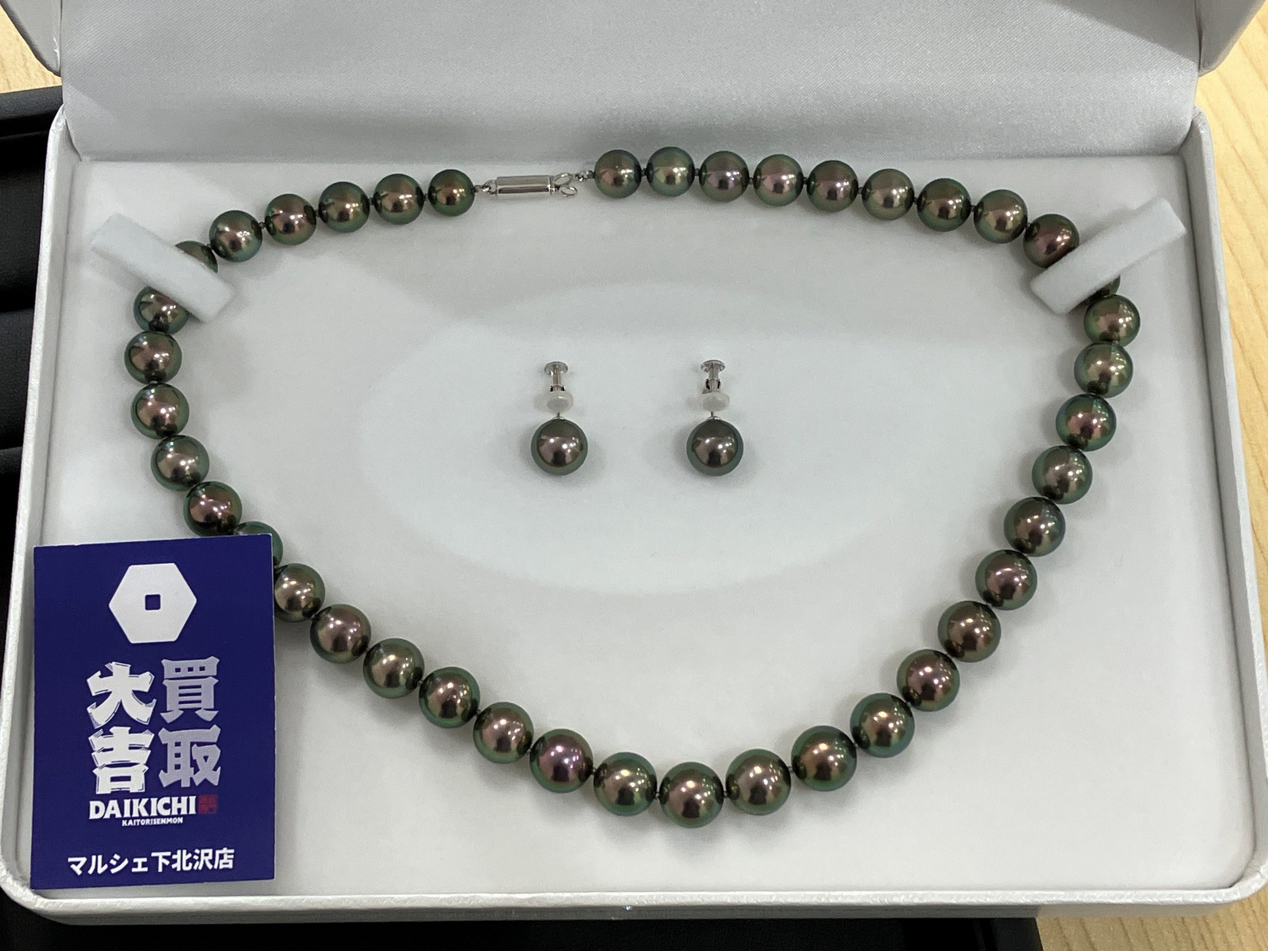 黒蝶真珠のネックレス &イヤリングをお買取致しました。(18金ホワイトゴールド留め具)