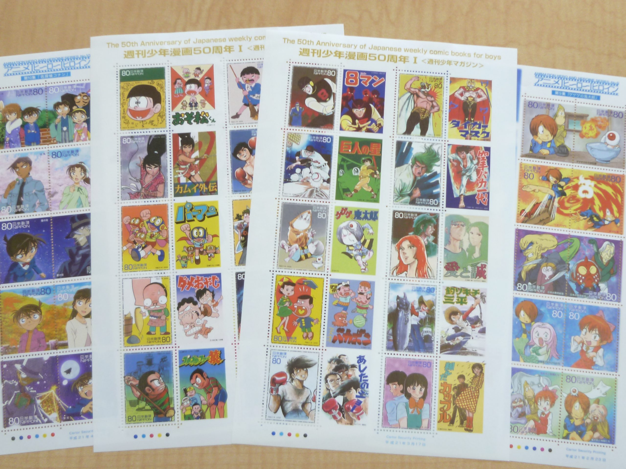 週刊少年漫画50周年記念切手シートシリーズは2009年に販売されており、