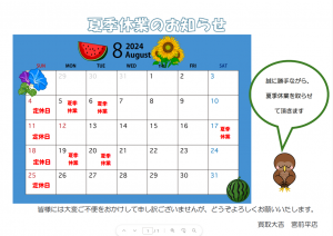 8月5日(月)~8月6日(火)夏季休業①