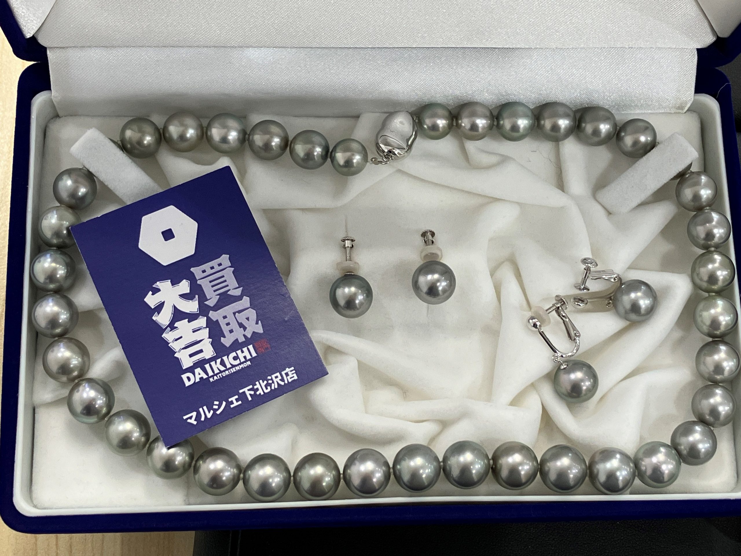 花珠パールのネックレスとイヤリングセットをお買取り致しました。