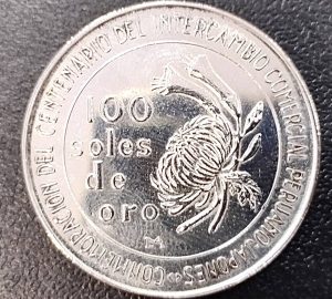 日本ペルー修好100周年記念 100ソル銀貨