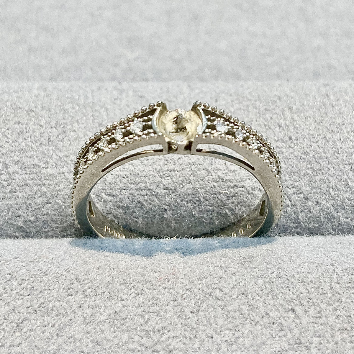 ご質問いただき、拝見させていただいたところ、真ん中のお石が落ちてしまっておりました。