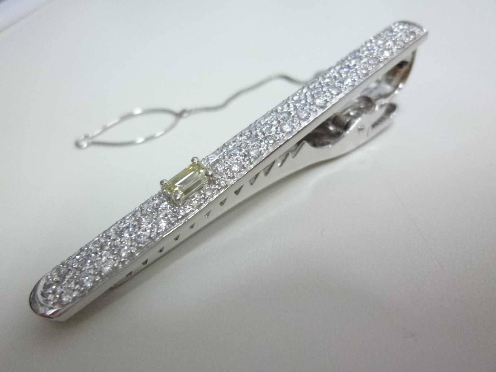 光の当たり方でキラキラ輝く豪華なネクタイピンですが、素材が