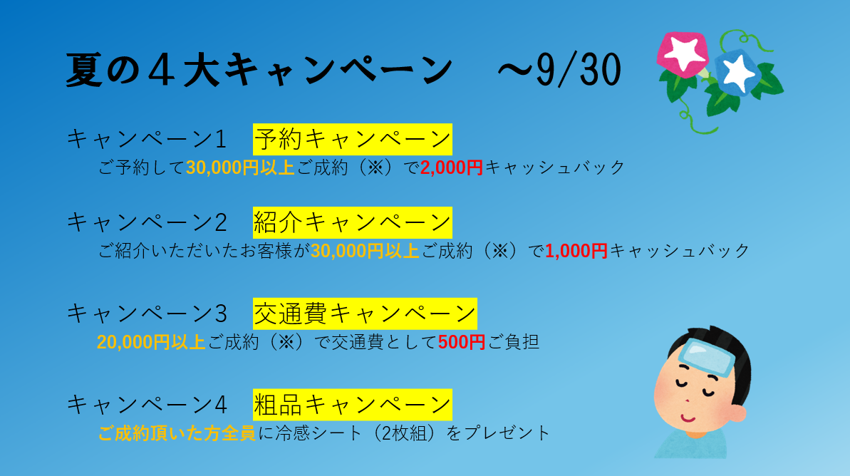 夏キャンペーンを開催中ですので、ぜひご活用ください。