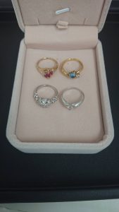 このような宝石が付いた指輪は、素材の金やプラチナの値段だけでなく、ダイヤモンドやルビー、サファイア、エメラルドと言った宝石の値段も加わってきます。当店では本部所属の鑑定士や専門業者の観点士によりお客様の宝石の価値を最大限評価いたします。査定は無料で行っておりますので、ぜひ一度当店へお持ちください。