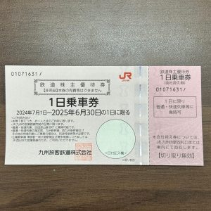 本日は 金券 JR九州株主優待券 1日乗車券 を買取いたしました。