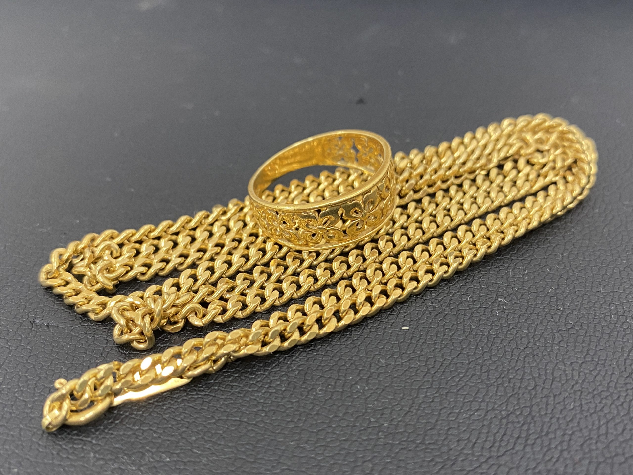 今回お買取したのは23金のネックレス、リングですが、金の延べ棒や金の置物、