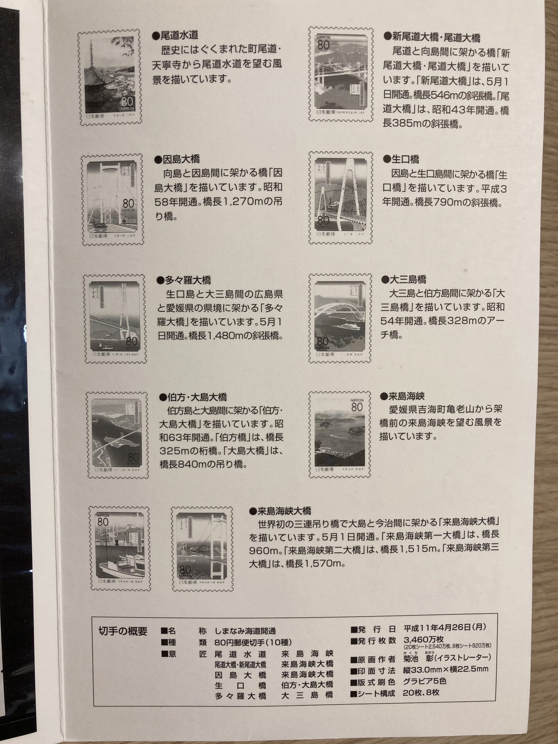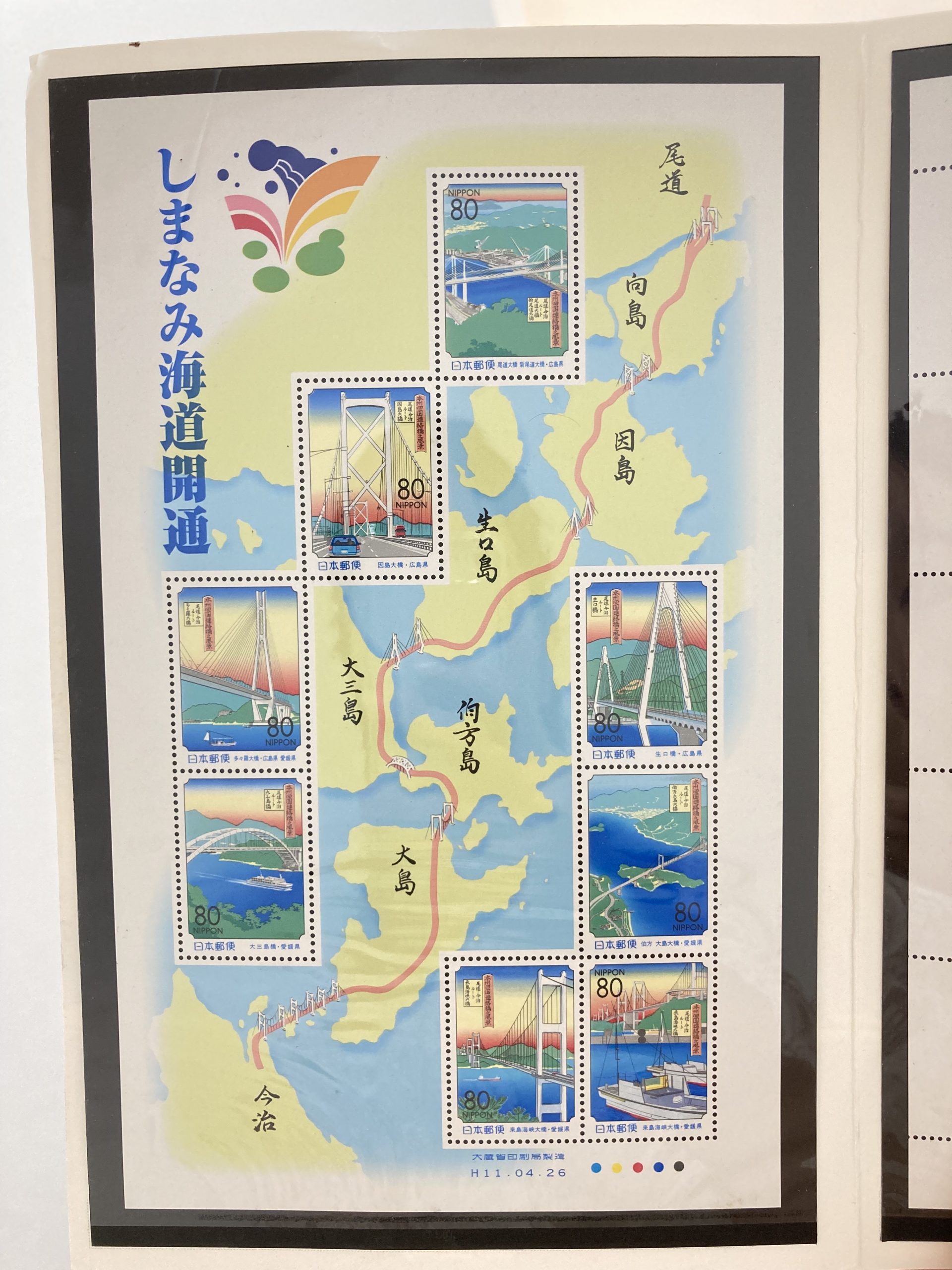 先日、広島県と愛媛県の間に浮かぶ、島々を結んだ「しまなみ海道」開通の記念切手をお買取りさせていただきました。