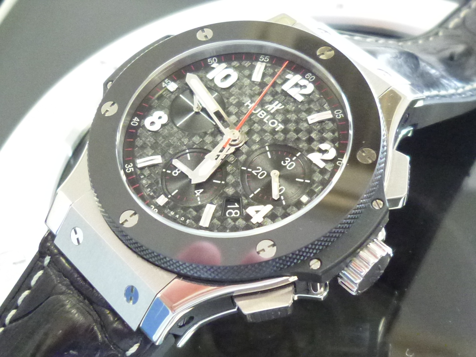 まさに異素材の融合で、ウブロらしい時計ですね。(^^♪