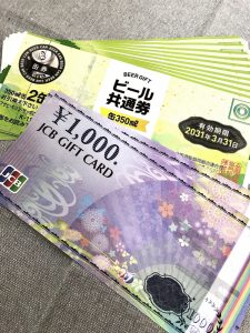手前がJCBギフトカード、奥はビール券です✨