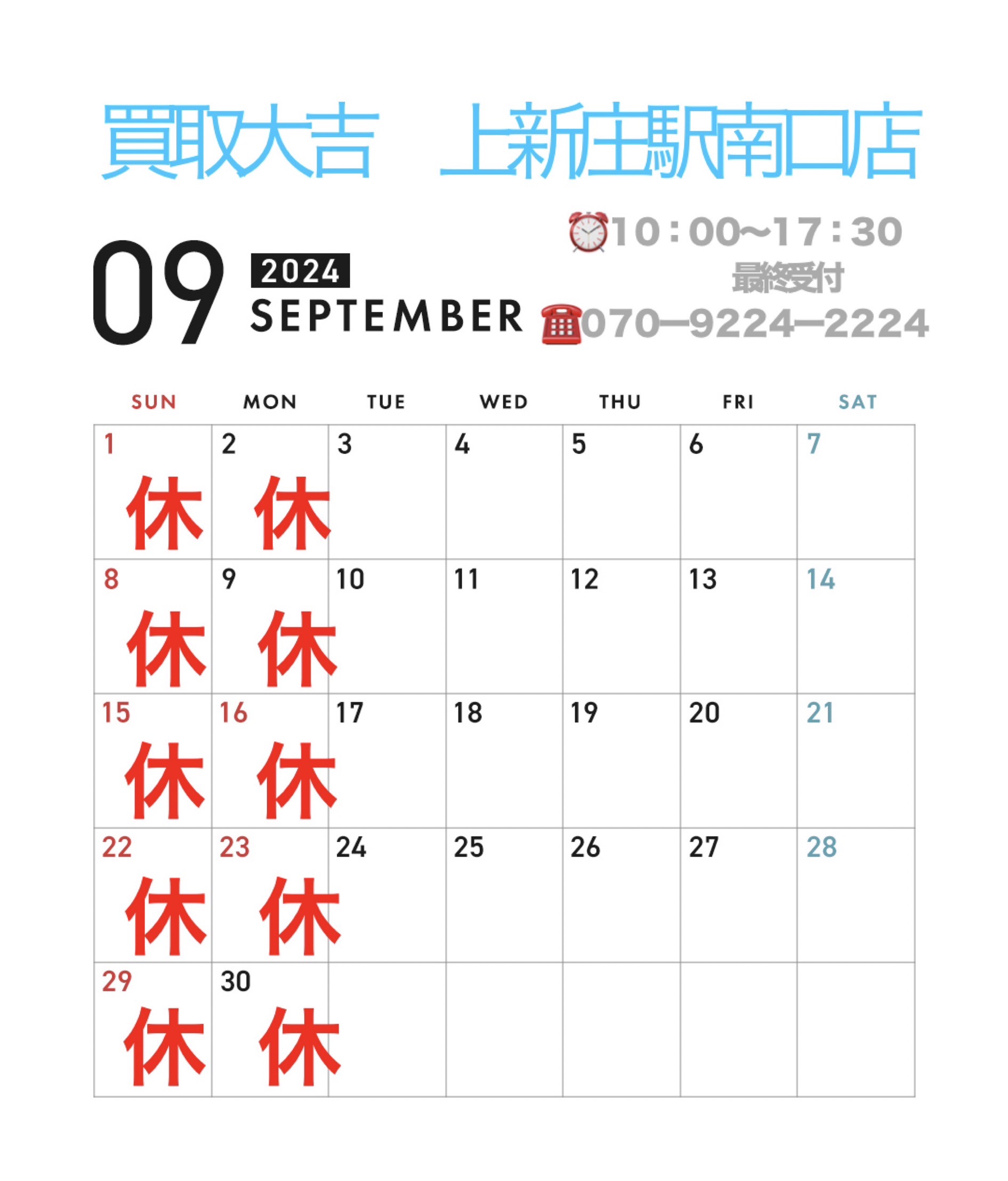 9月の営業日です↓