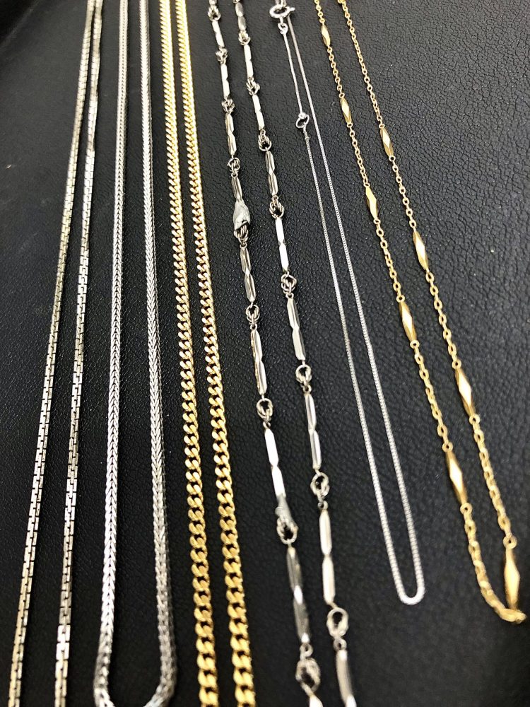 チェーンが切れてしまっているものもありましたが、貴金属としてのお買取りには影響ございません。