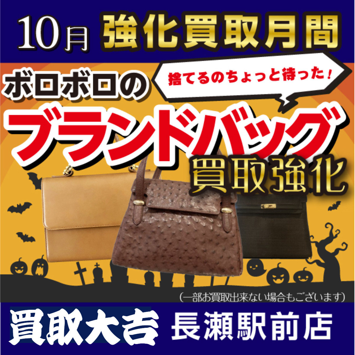 【お知らせ】10月の買取強化アイテムはボロボロのブランドバッグです! | 長瀬駅前店