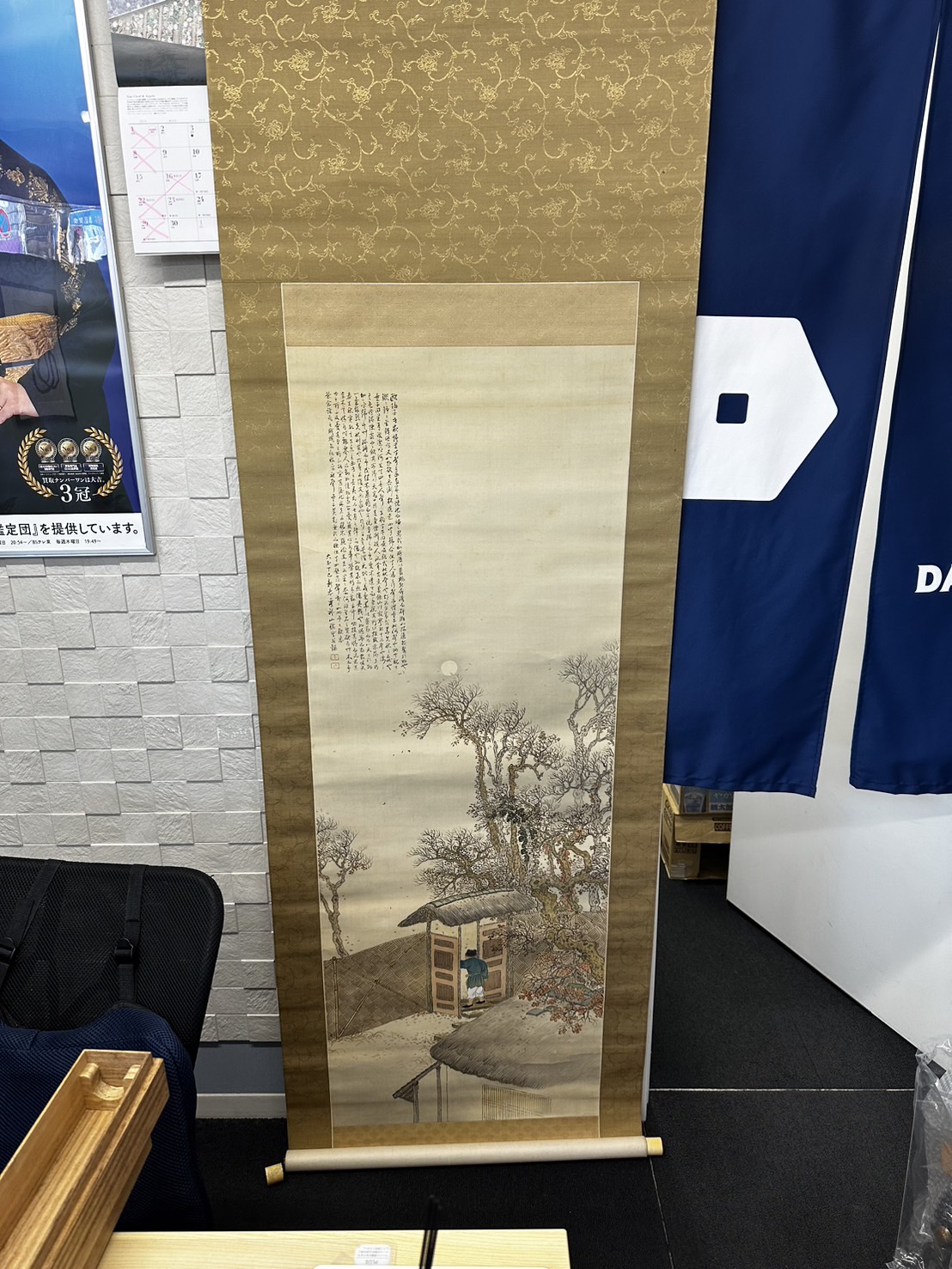 掛軸 骨董品 のお持ち込みとなります。当店では骨董品類は、他店対抗の高額レートでお買取りさせていただいております。西武新宿線沿線の方々が遠方より数多くご来店いただいておりますので、1点からでもご対応させていただいておりますので、ぜひ骨董品類は当店までお持ち込みください。このお品物も他店より高額の査定にて、お客様お喜びの高価買取となりました。