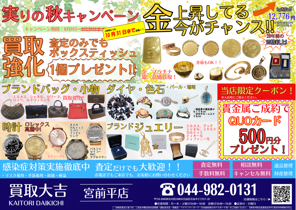貴金属ご成約のお客様にQUOカード500円分プレゼントをしております🥰
