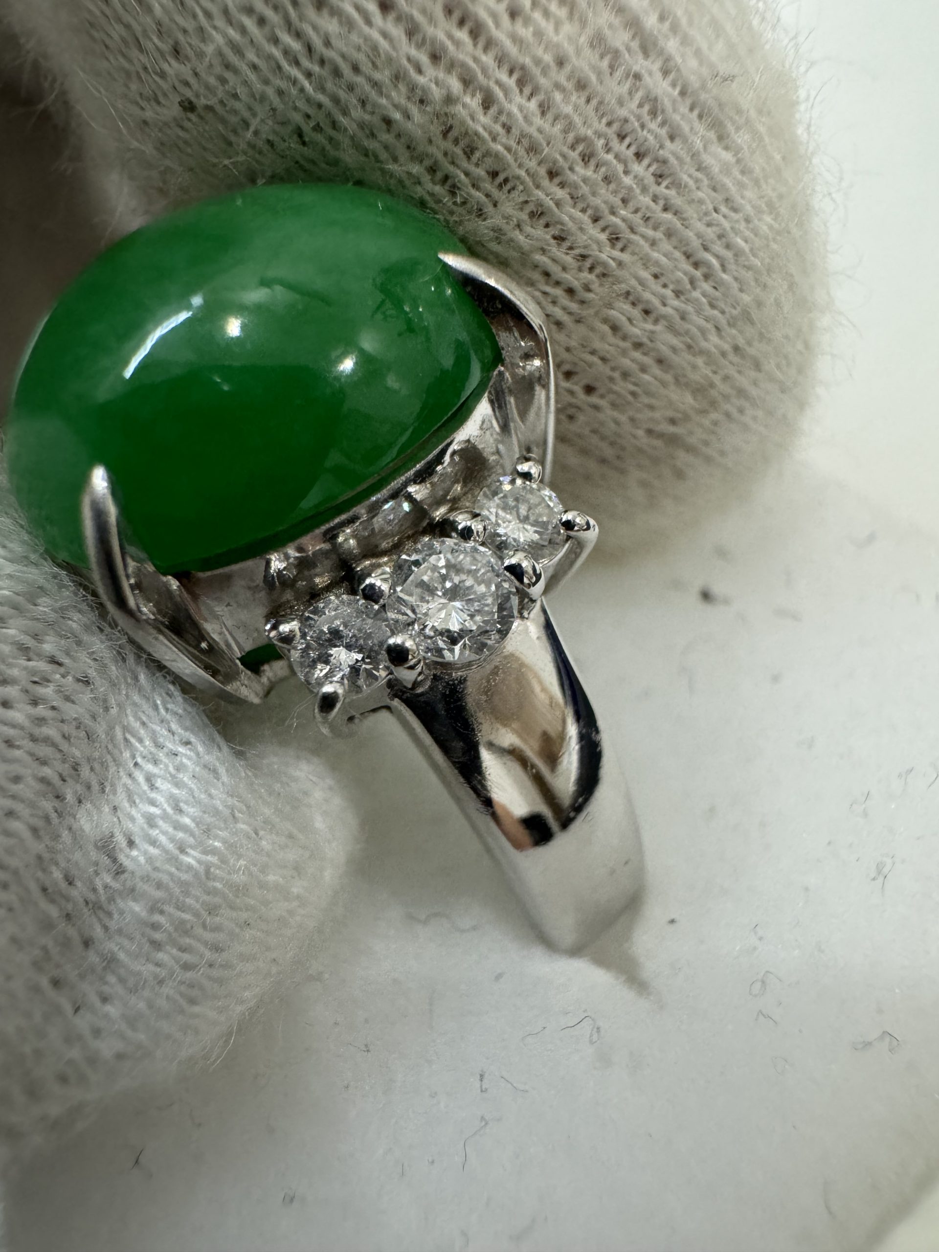 さらに、翡翠を引き立てる装飾として、ダイヤモンドがあしらわれている場合は、リング全体の価値が大きく上がります。ダイヤのカットや輝きも査定時に考慮されるポイントです。