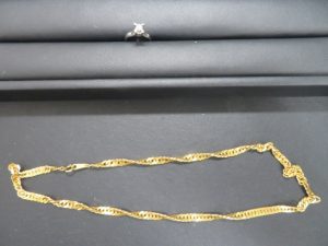 本日は貴金属の18金ネックレスとプラチナのダイヤモンドリングをお持ち頂きました。