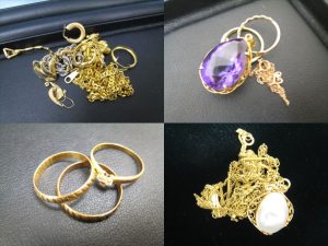 金製品のスクラップ(切れたチェーンや指輪の枠等他多数)もお買取りしております。