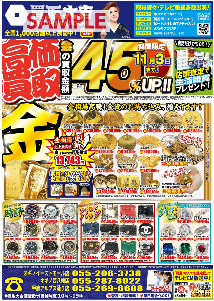 甲府アルプス店では高価買取キャンペーンが始まっております。