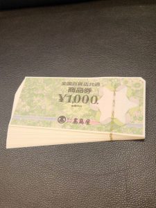 全国百貨店共通商品券、セブン&アイ商品券、JCBギフトカードをお買い取りいたしました。