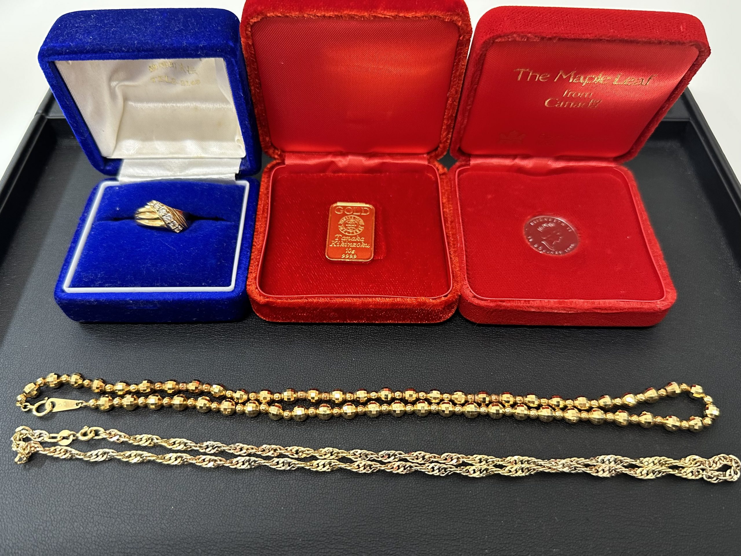 K24のインゴット、PT1000コイン、K18ネックレス、K18ダイヤのリング | パテオ西新発田店