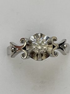 先日、買取させて頂いたダイヤの指輪です。何十年か前にご購入されたお品物とのこと。