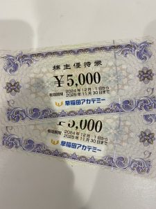 お品物は早稲田アカデミー株主優待券でございます!