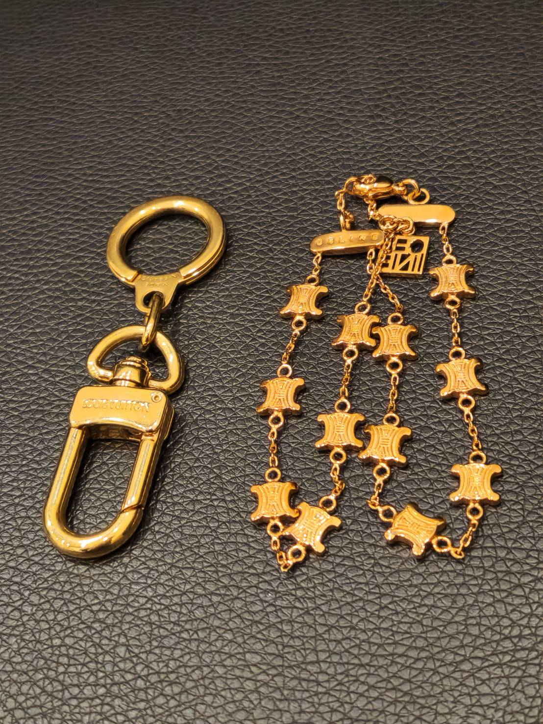 ルイヴィトンとグッチのバッグ、ルイヴィトンのキーリング、セリーヌのブレスレットをお買い取りいたしました。